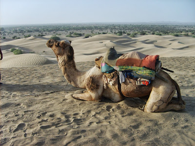 We had booked a cottage in the middle of a village called Kuri, which is further 50 Kms away from Jaisalmer, deep into the desert . The drive took us to middle of nowhere though the map and direction posts indicated that we were on the righttrack .We reached Kuri in the late evening and it was one fascinating village that I ever visited. It was a tiny village with small handloom shops, mini huts , and the only cottage houses which we fortunately had booked .Locating people was actually a tougher challenge than signposts. The village was surrounded by sanddunes and cactus filled deserts with the occasional camels roaming around , just like those old films .The stay in a mini cottage , in the middle of nowhere with minimum facilities and some authentic Rajasthani dinner made us completely awe struck