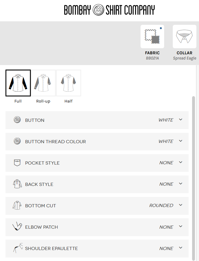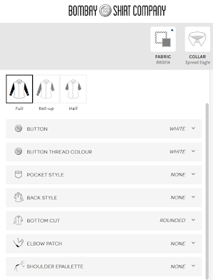 It all begins with a Fabric Selection . This includes Single Ply, Double Ply, Premium, Italian Fabrics, Japanese Fabrics among others. The single ply shirts are the cheaper options and starts from 1990 INR.